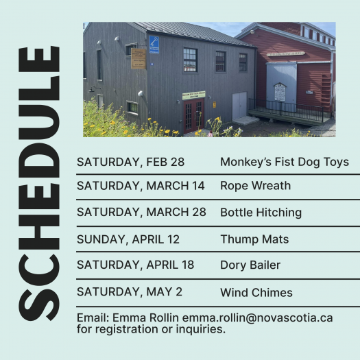Looking for something to do? Check out our workshops happening at the Boat Shop! Registration is required. For registration or inquiries, please email Emma Rollin emma.rollin@novascotia.ca.